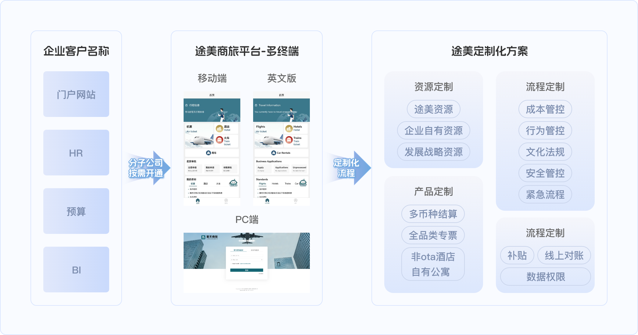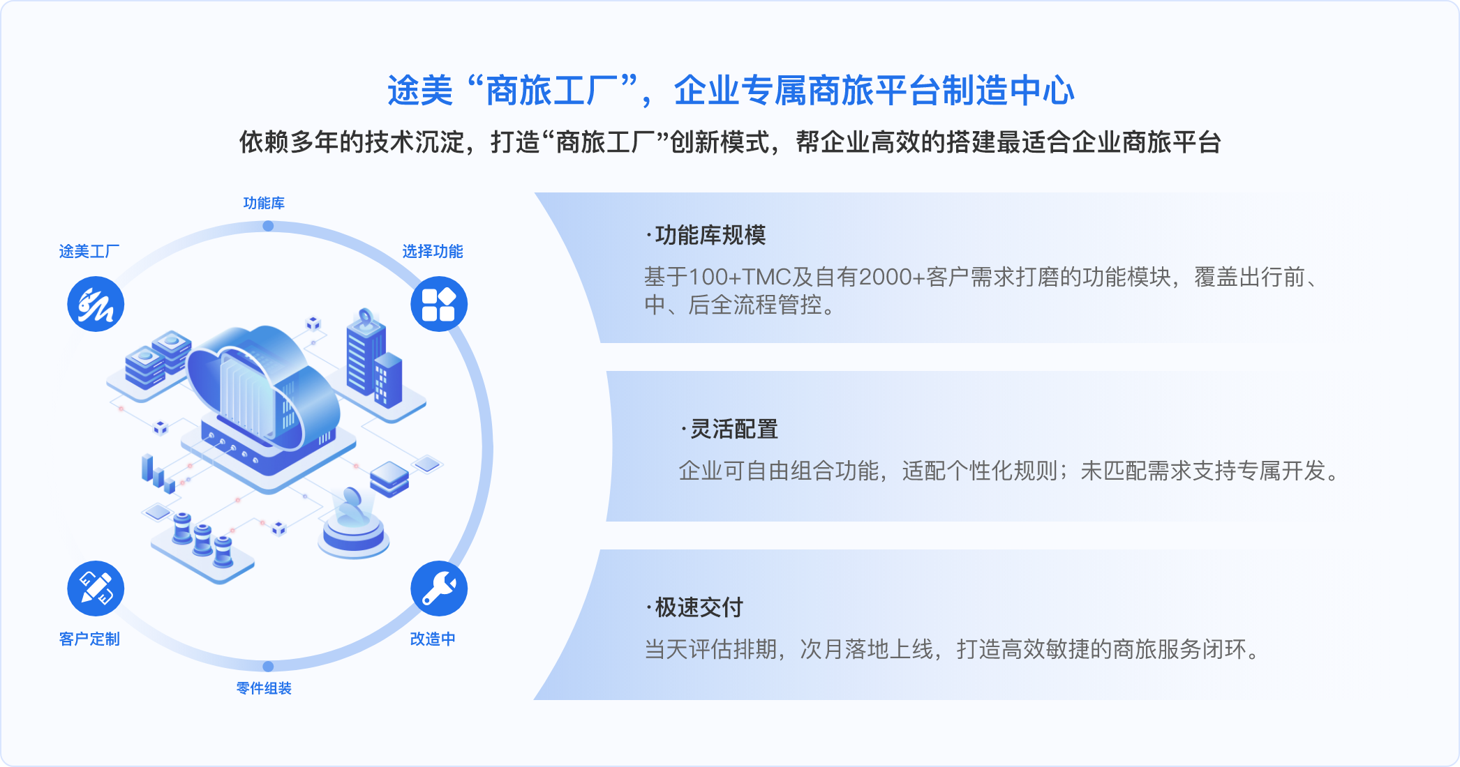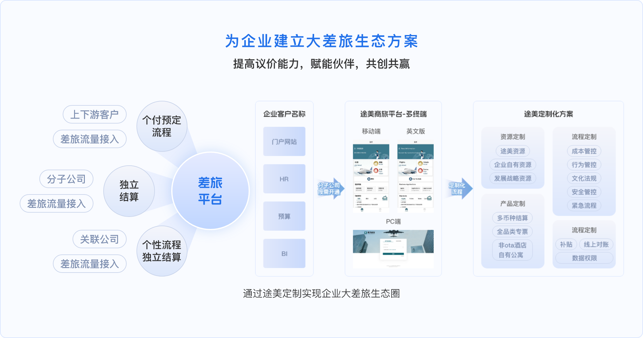 为100+同业伙伴提供差旅管控模块和出行资源开发对接服务,超2000家各行业头部和高成长型客户差旅及费控服务经验,致力于为客户提供一站式差旅服务,助力企业打造合规节省、规避价格黑箱、智能高效的差旅出行平台。